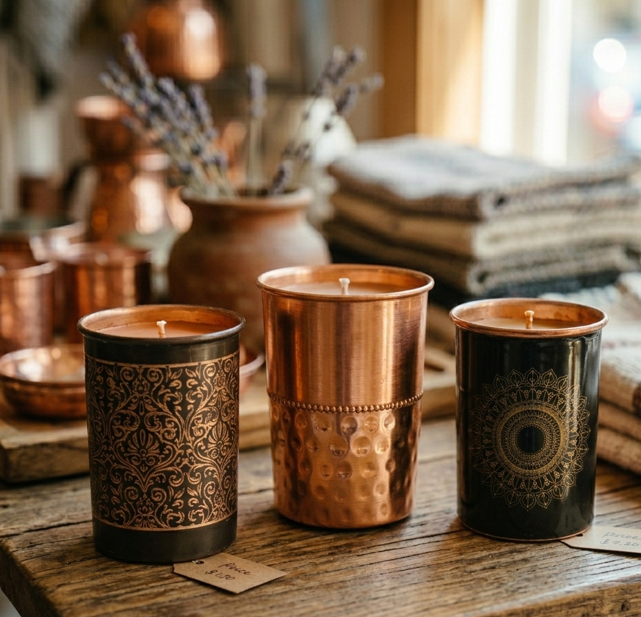 Each candle in this trio is hand-poured using clean-burning natural soy wax and 100% plant-based essential oils, housed in a beautifully crafted reusable copper jar. Phthalate-free. Vegan. Handcrafted in India by women artisans.