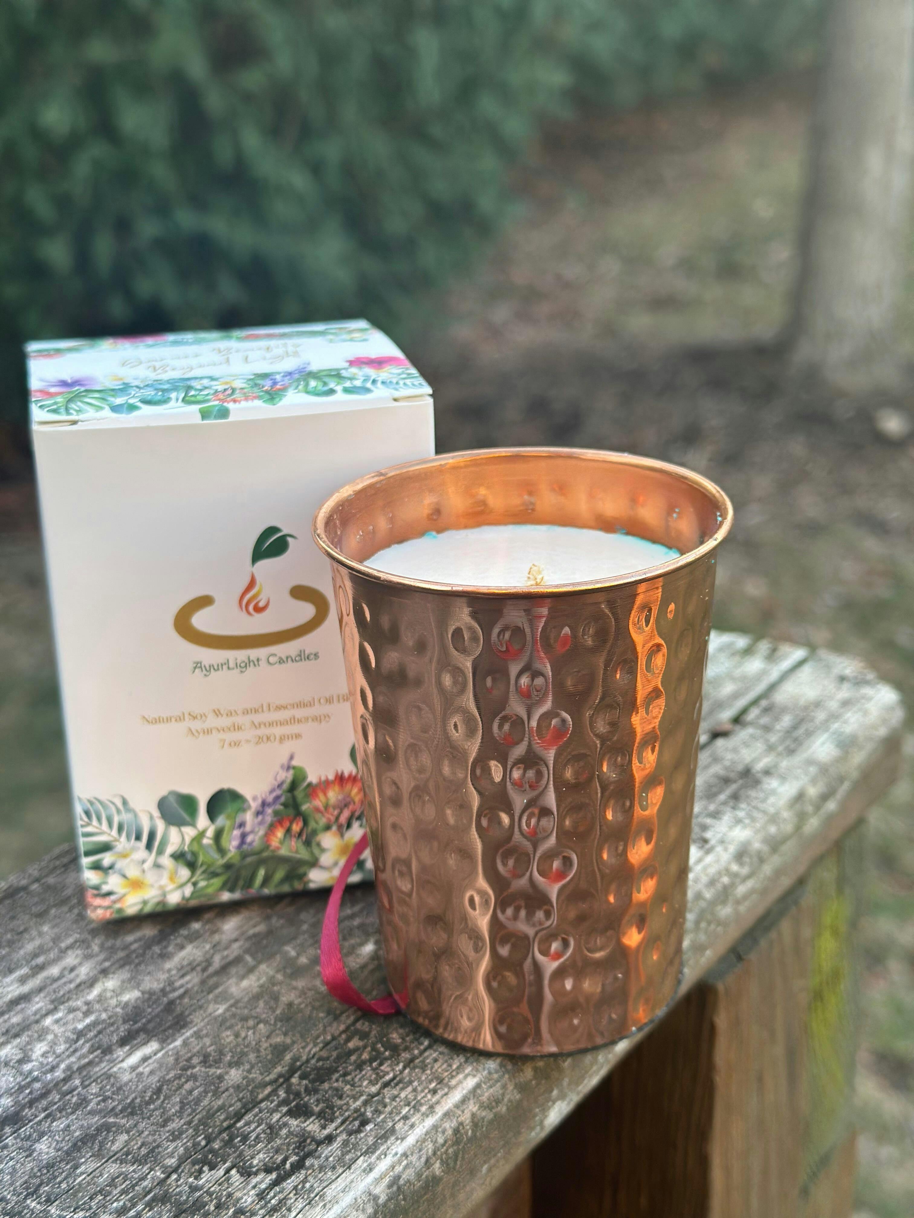 Ignite your inner glow with DIVYA, an uplifting aromatherapy candle that blends the grounding wisdom of Ayurveda with the radiance of citrus and spice. Hand-poured into a reusable copper jar, this natural soy wax candle features an energizing fusion of Sandalwood, Sweet Orange, and Cinnamon essential oils—designed to awaken clarity, boost mood, and warm your space with emotional light.