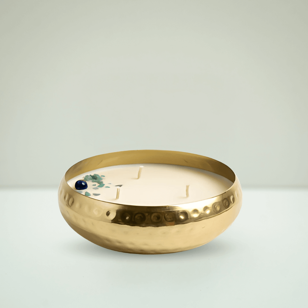 Immerse your senses in the luxurious depth of the 7 inch SUFI Gold Circle Urli, a harmonious blend of sandalwood, saffron, and oud essential oils. Smooth and grounding, sandalwood calms the mind and nurtures inner stillness. Golden saffron adds a luminous warmth that uplifts the spirit and inspires joy. Rich and resinous, oud anchors the blend with a deep, meditative quality, creating an atmosphere of tranquility and refinement. Poured into an elegant circle bowl (urli), this candle embodies timeless beauty, balance, and ritual.